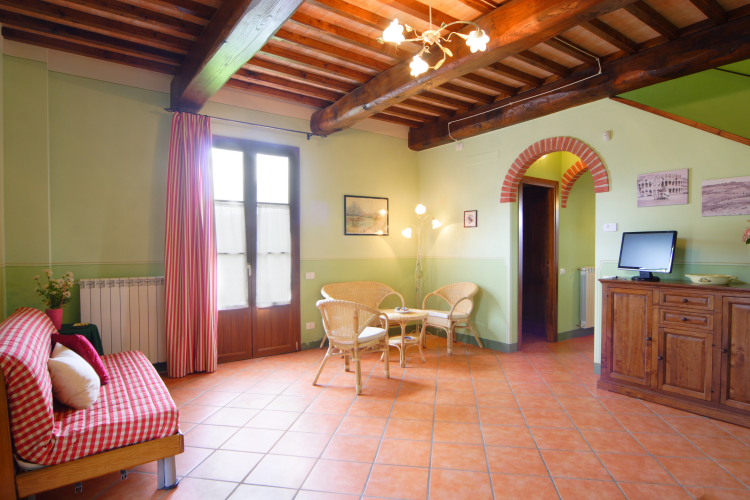 Si trova in aperta campagna su una splendida collina panoramica in una zona tranquilla e silenziosa, e si struttura su due piani:al piano terra troviamo il soggiorno, la cucina con tavolo per 6 persone, un bagno ed una spaziosa veranda; al primo piano troviamo una camera matrimoniale, una camera doppia, un bagno e un locale di servizio.